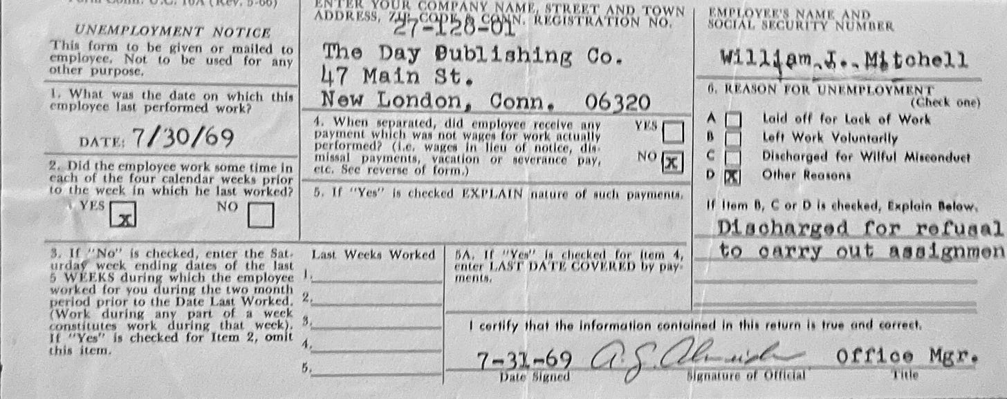 Despite the painful outcome of my clash of facts and authority, I learned a lot at The Day — all the basics of nailing stuff down and some of what it takes to tell stories in ways people might want to read them. The paper provided me with smart mentors, reporters like Stone and Morgan McGinley and the late Stan DeCoster.